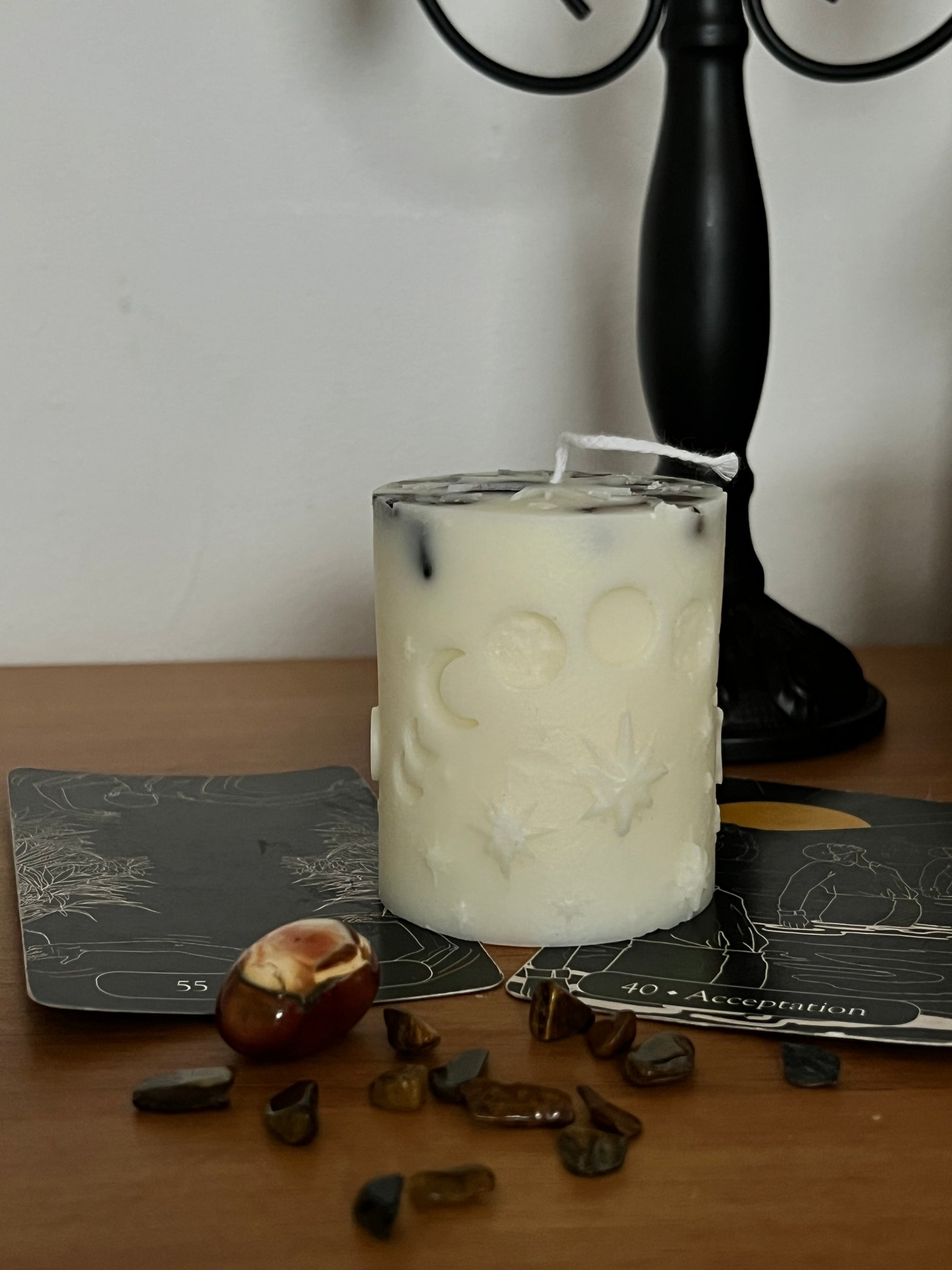 Type : Bougie Pilier artisanale (sans contenant).